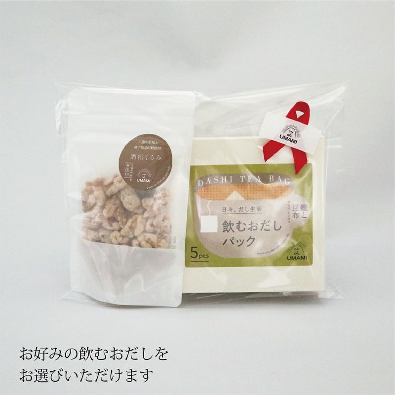 【ON THE UMAMIプチギフト】飲むおだし1箱と八海山酒粕くるみ1袋の詰合せセット袋入り/のし紙不可