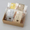 だし屋の炊き込みご飯の素 鯛めし・ほたて五目・鶏めし・野菜五目が1袋ずつの詰合せギフトです。 包装済みでお届けいたします。のし紙、手提げ袋のご要望がありましたら、ご用命ください。