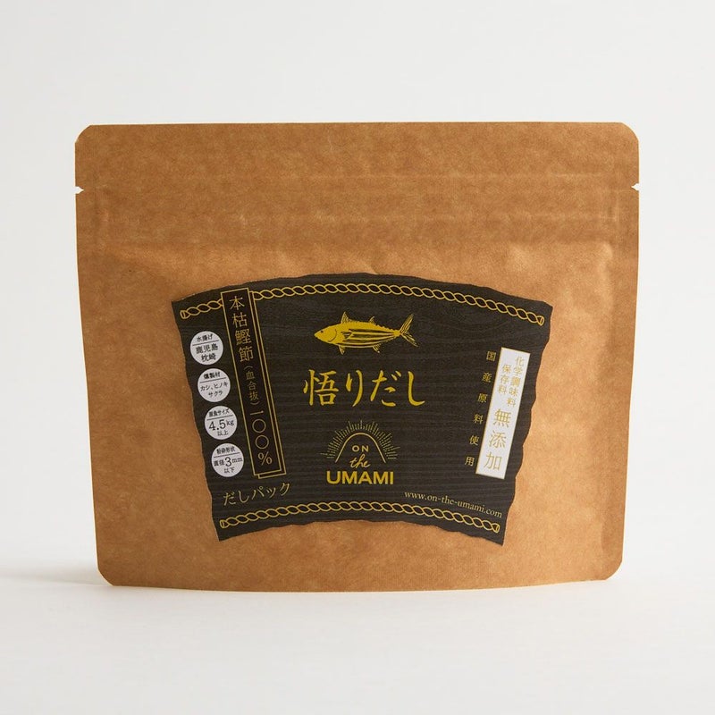 鹿児島県枕崎産のサイズが4.5kg以上の鰹を厳選して素材に使用。荒節の表面を削り、カビ付け工程を施して水分を取り除き、うまみを凝縮、脂肪を分解した「本枯鰹節」という最高品質の鰹節に仕上げました。鰹本来の味と香りを際立たせた、クリアな黄金だし。