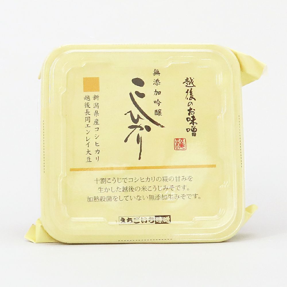 十割こうじでこしひかり糀の甘味を生かした越後の米こうじみそです。加熱殺菌をしていない無添加生みそです。