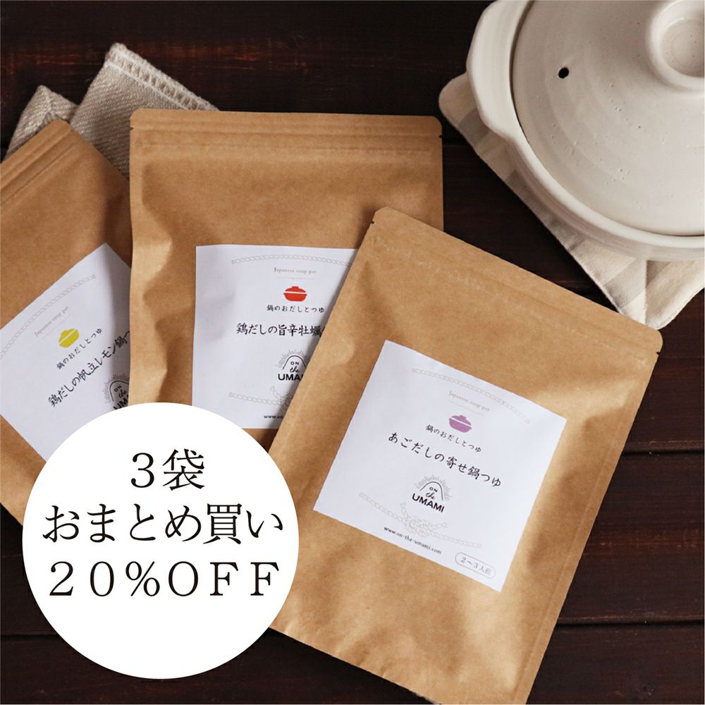 他の画像を見る おまとめ割引【選べる!3袋まとめ買い】鍋つゆ20%OFF 通常価格 ¥ 1,620 のところ 販売価格 ¥ 1,300 税込 販売期間 2025/10/24 0:00 〜 2026/03/31 23:59 詳細を見る お気に入りに登録する