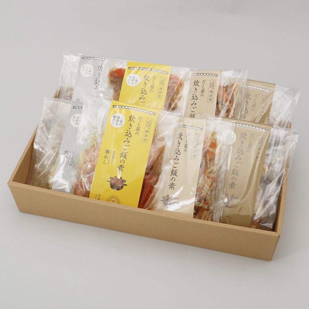 on the umamiの炊き込みご飯の素は、そのボリュームたっぷりな具材と、だし専門店の確かな味わいから、ご自宅用だけでなく「贈りもの」としても大変人気があります。「忙しい人に手軽に本格的な味が楽しめると喜ばれた」「出産内祝いに選び、家族みんなで食べられた」といった声も多数いただいています。