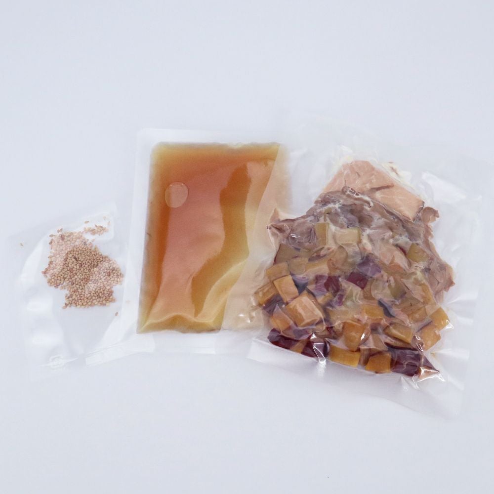 私たちは、プロの料理人も認める「おだしの専門店」としての誇りをかけ、調味液に使用するダシに徹底的にこだわっています。それぞれの具材(鯛、鶏、きのこなど)の個性や旨味を最大限に引き出すため、最も相性の良いおだしを厳選し、専用に調合しています。もちろん、原料は安心安全の国産にこだわり、具材がごろごろとたくさん入った具沢山な仕上がりです。調味液と具材がセットになっているので、研いだお米と合わせて炊飯器に入れるだけで、簡単に本格的で豪華な炊き込みご飯が完成します。