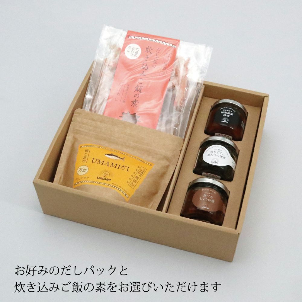 内祝いに親戚に贈りましたが、とても喜んで頂きました。だしと炊き込みご飯の素が選べるので、その点も良いと思いました。メッセージカードも付けることができ、よい贈り物ができたと思います。 -